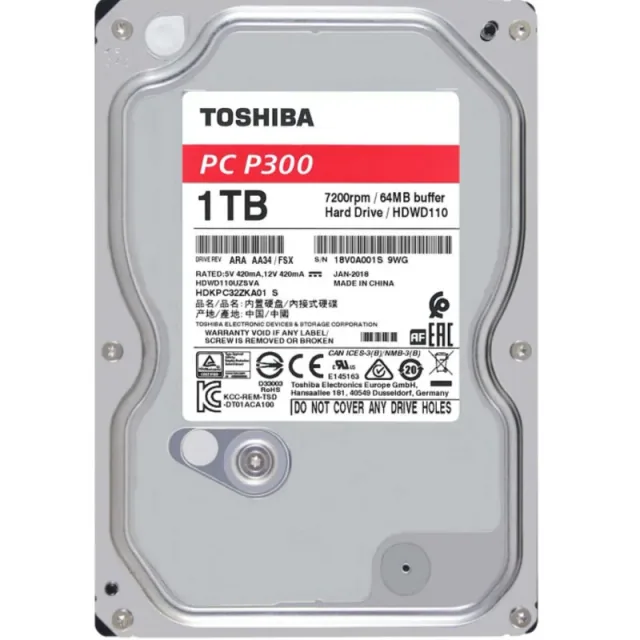Toshiba Hard Disk Int HDD 3.5" SATA 1TB 7200RPM PC-P300 HDWD110